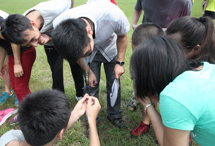 拓展教练在检查各队支援的发结