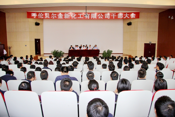 8月13日上午,金新化工干部大会在文体中心报告厅举行,会议宣布了金新化工高管人事任命情况,集团领导对金新化工装置试车和下步发展提出要求。金新化工和东明矿业、天盟和天驰呼伦贝尔分公司各级领导干部及员工代表200余人参加大会。