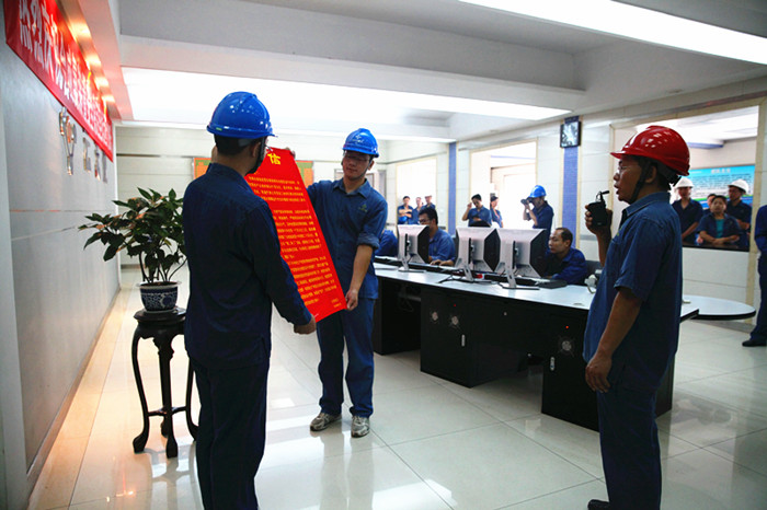 公司常务副总经理、总工程师陈林为合成车间颁发奖金