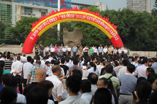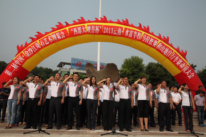 8月23日上午9点,水富县在春晖广场举行第二届中国金沙江奇石博览会、“西部大峡谷杯”2013云南·水富半程马拉松赛和山地自行车赛(以下简称“一会两赛”)动员大会,水富县四套班子领导以及“一会两赛”冠名企业、合作伙伴、赞助商代表、各企事业单位干部职工代表参加了动员大会,公司党委书记梁洪应邀出席。