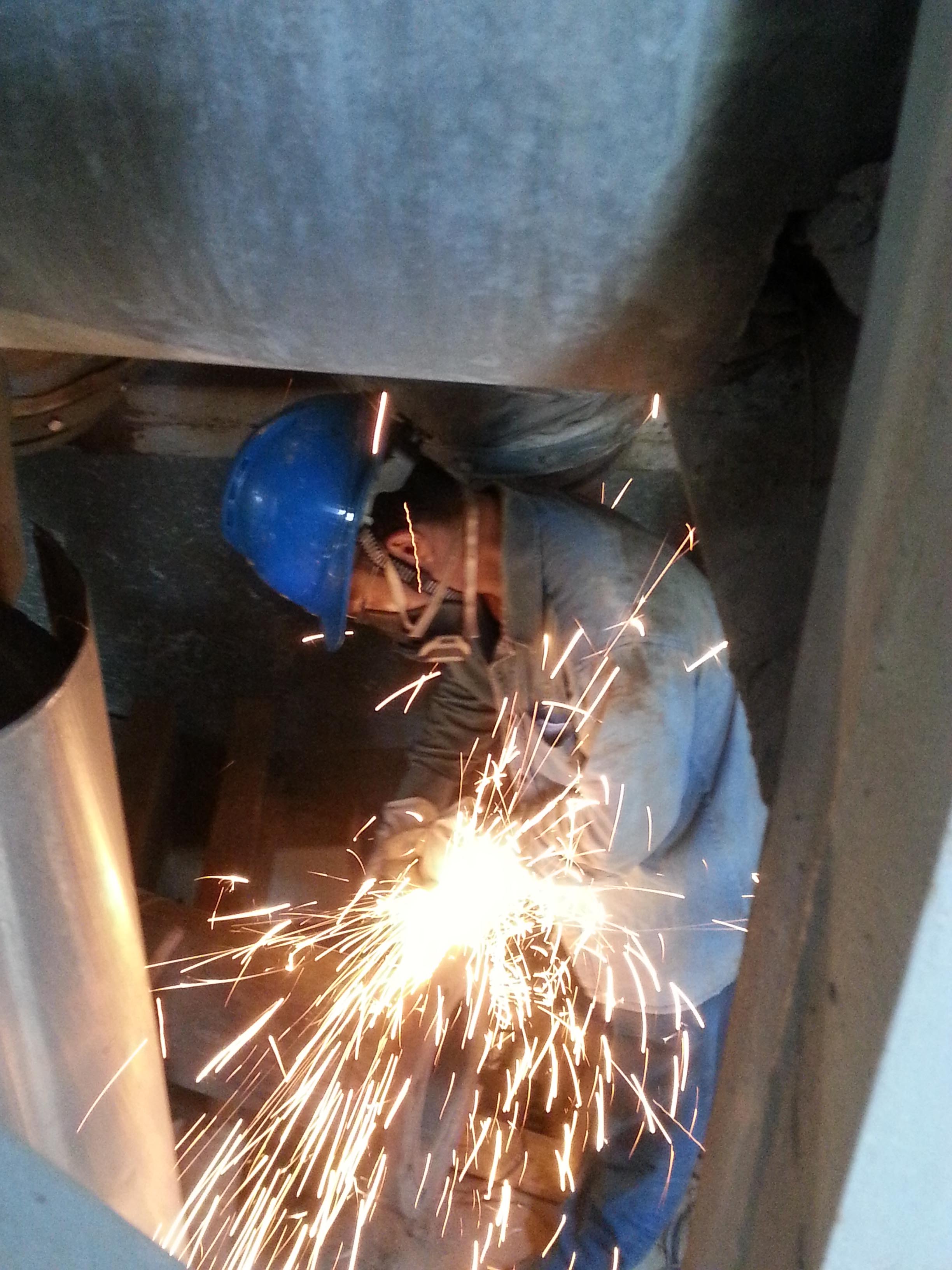 27日上午10点,当记者来到供热2号锅炉检修现场时,看到各单位抢修人员正在2号锅炉炉膛内紧张的忙碌着。在温度高、灰尘含量大、管道纵横交错空间狭小的炉膛内作业,这更增加了抢修工作的难度。