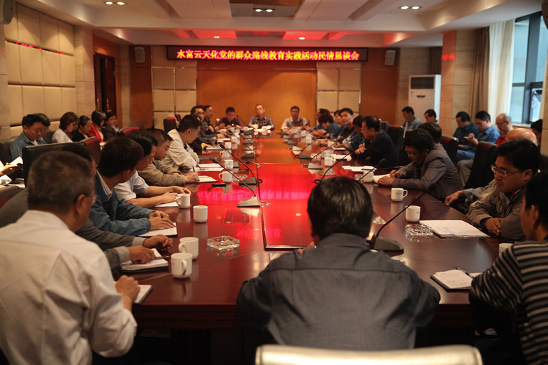 当天上午,在云天宾馆一会议室召开的民情恳谈会上,张嘉庆首先听取了公司党委书记梁洪就党的群众路线教育实践活动阶段性工作开展情况的汇报发言。作为当前集团上下全面开展的一项重要主题活动,公司党委结合自身实际,多形式,多措施,统筹推进党的群众线路教育实践活动持续深入。梁洪谈到,通过前期的开展,各级领导干部对群众路线和群众工作的理解、认识不断加深,领导干部的群众意识、服务意识、廉洁作风得到进一步加强。下一步,公司党委将按照集团党委要求,紧密结合实际情况,在学习上下功夫、在结合上下功夫、在深入上下功夫、在务实上下功夫、在作风上下功夫、在典型上下功夫,强化基础工作,创新活动载体,力求活动效果,改进和加强群众工作,着力协调解决职工群众的实际困难和问题,努力构建和谐水富云天化,为企业发展营造良好的环境和氛围。