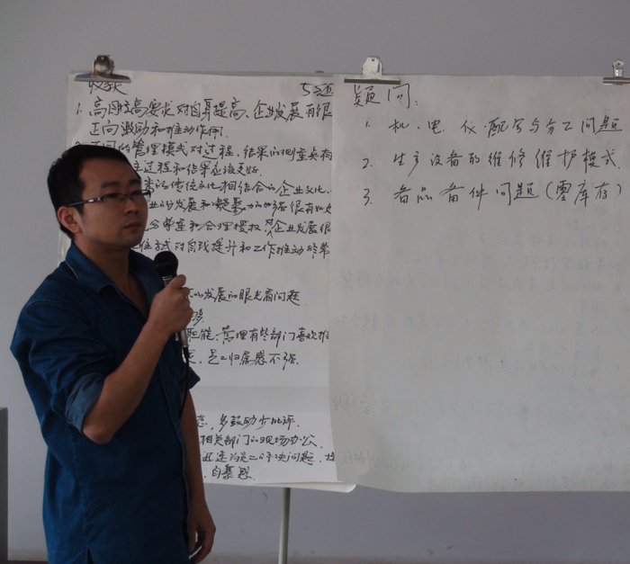 会上,与会技术人员在各自组内分享了此次参观交流的收获,同时也围绕公司存在的问题进行了热烈的讨论,碰撞智慧的火花。经过一个小时的讨论,TDP项目培训的五个小组汇总并分享了各自的成果,大家也针对总结出的成果在组间进行了探讨,提出了许多建设性的意见与建议。