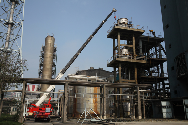 硝铵装置目前排放废水为混合废液,其PH变化大,水中硝酸铵含量变化大,尽管公司采取了增加金属丝网除雾器的措施,但效果并不理想。因此,公司将硝铵装置废水处理列为了技术攻关课题。在硝铵装置停车前,公司相关部门多方调研、比较、论证,最终确定了使用增加孟莫克高效除雾器,降低废液氨氮含量的方案。两台新除雾器,已于今年8月到货并检验合格。硝铵装置停车后,设备部和机械厂随即组织人员对新设备进行安装,目前主体设备已安装完成,机械厂正进行现场配管,随后设备厂家还将前来公司指导内件的安装。
