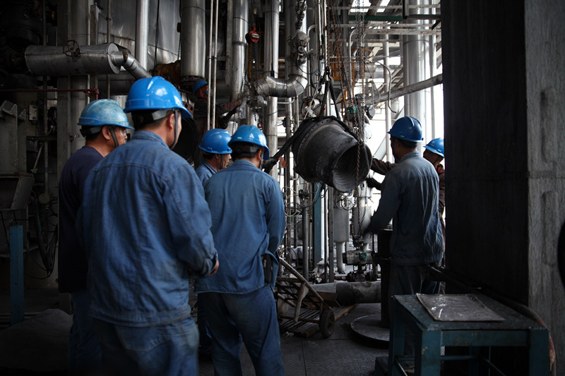 旧烧嘴罩成功吊出后,随即将进行新烧嘴罩的吊装、组对和焊接,机械厂后期将对旧烧嘴罩进行修复备用,同时还将对46个敲打器以及气化炉内部进行全面检查。