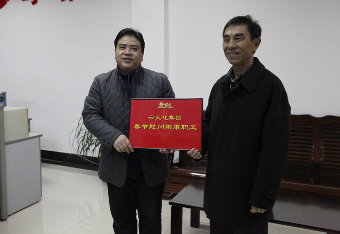 最后,他盛华一行带着集团的祝福来到生病职工周遵宏家中。得知周遵宏生病的十余年中,公司给予了很多的帮助,看到夫妻二人现在乐观积极的生活态度,他盛华感到由衷的高兴,他说,每一个职工都是公司最宝贵的财富,大家共同生活在云天化这个大家庭中,就是要像一家人一样相互关心、相互帮助。他盛华为周遵宏送上了慰问金,祝福他们新春快乐。