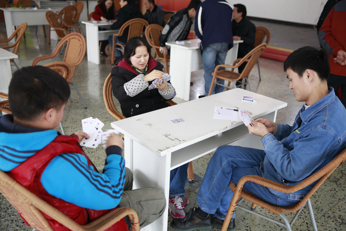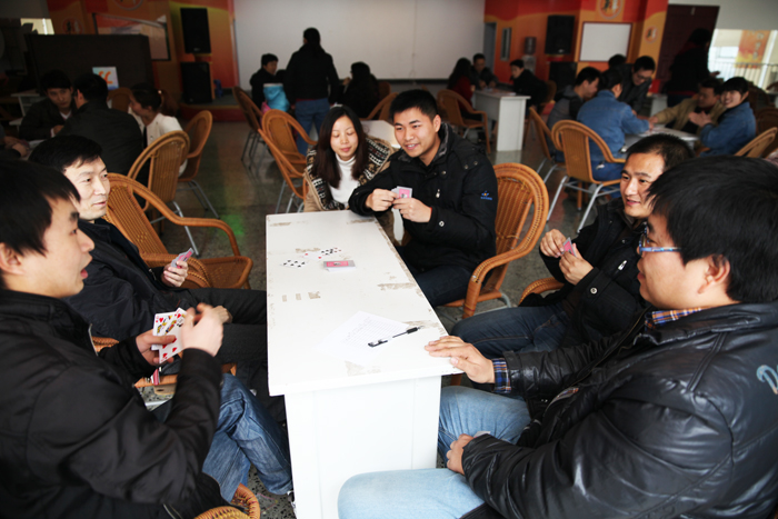 当天的比赛中,共有来自公司各单位的123名参赛选手在象棋、五子棋、斗地主、干瞪眼四个项目中展开激烈角逐。比赛中,选手们则个个精神饱满、神采飞扬;比赛现场气氛活跃而热烈。棋类组的比赛中,员工互不相让,每招每式,或进或退,环环相扣,步步为营;牌类比赛中,员工个个兴趣高昂,都想来碰碰运气,各亮技巧,全力取得好战绩。