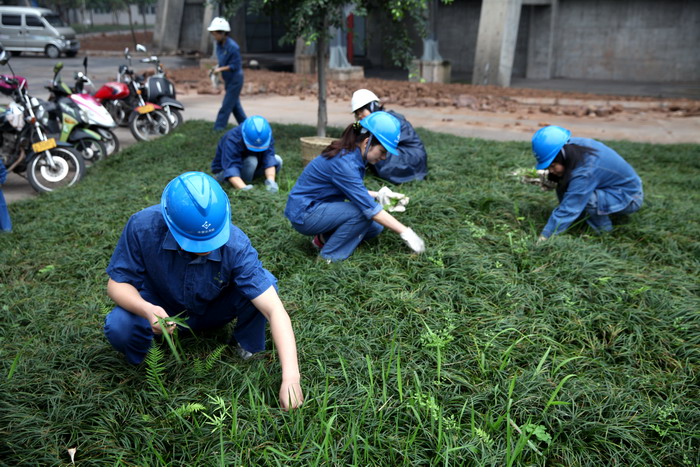 在公司的统一安排下,各支部的员工走进了所管辖的绿化区域,对区域内的未开垦荒地进行平整,对草坪进行除杂草、浇水和补种。一时间,生产区内一顶顶蓝帽子、白帽子甚至是红帽子,星星点点,在各处涌动。