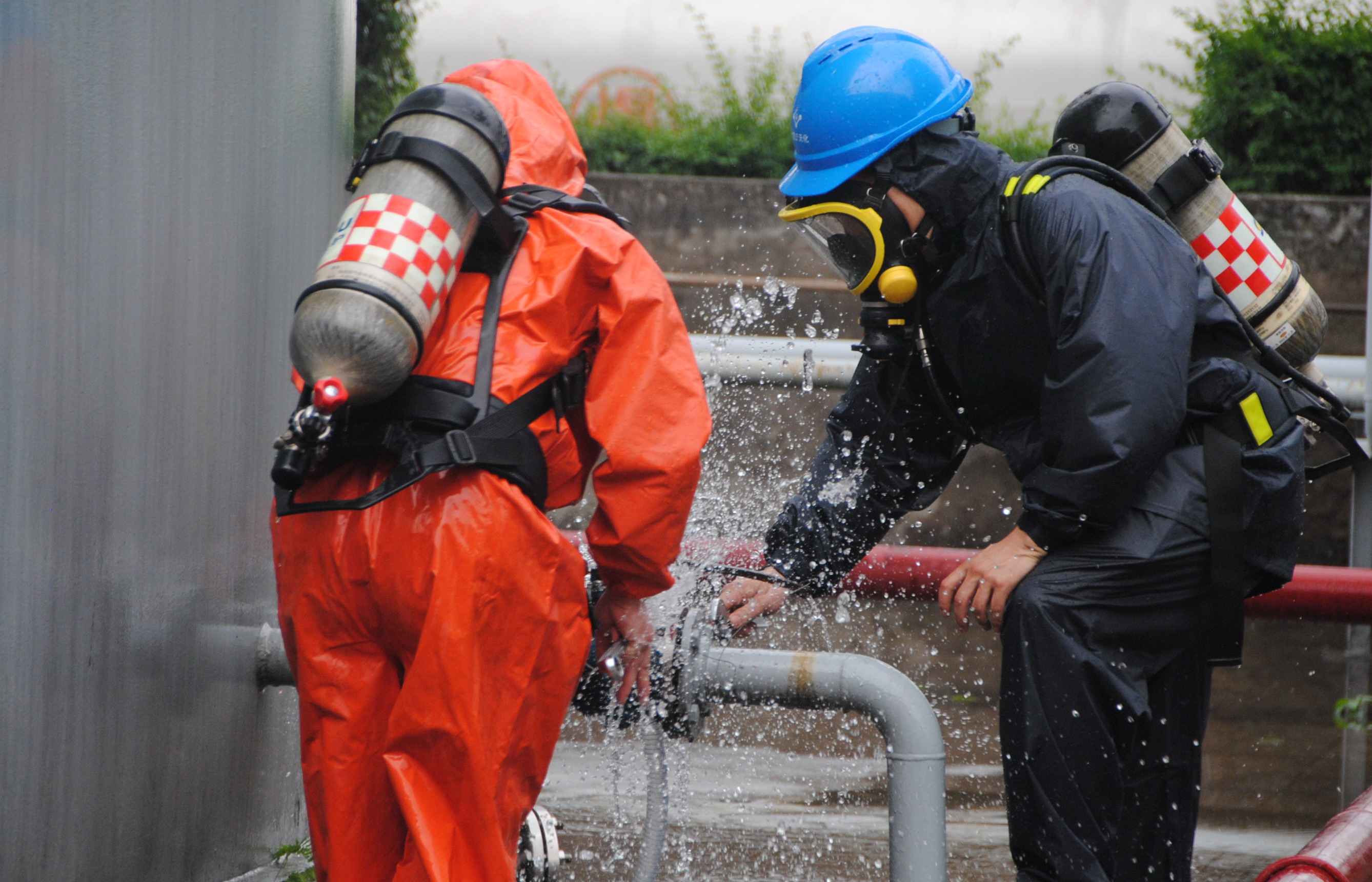 23日下午,在消防部的组织下,消防应急救援分队队员们在公司季戊四醇装置进行了事故处置预案演练,事故模拟季戊四醇装置乙醇储罐发生泄漏,主控人员通过视频监控,发现乙醇储罐因阀门泄漏而引发着火,并对相邻的另一储罐构成严重威胁,一名巡检操作人员晕倒在现场。演练过程中,队员们把几天来学习掌握的内容充分应用到了实战中,监控、报告、疏散、救人、灭火等环节紧密衔接,季戊四醇车间、消防部等单位迅速联动,收到了良好的效果。