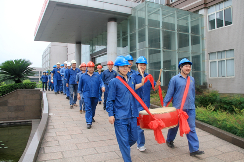 祝捷队伍行进到主控室门口,受到了等候多时的生产部干部员工的列队欢迎,祝捷队伍同生产部干部员工一一握手,互致祝贺。