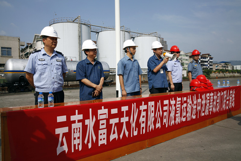 为提高公司危险化学品在道路运输途中的事故应急救援处置能力,公司总经理办公室、安全环保部、物资部、消防部于7月2日下午4时联合开展了一次道路运输液氯泄漏事故应急救援演习。