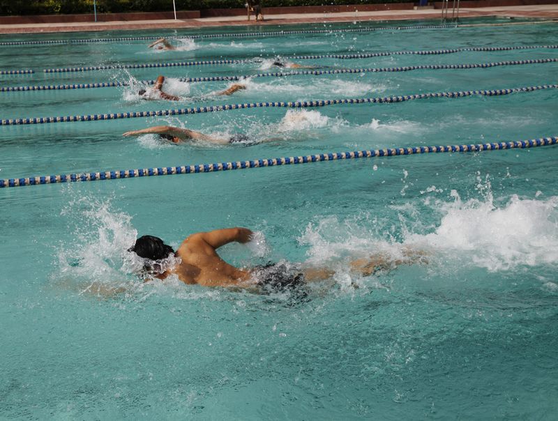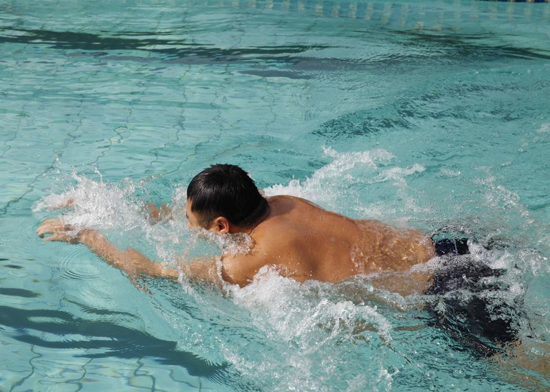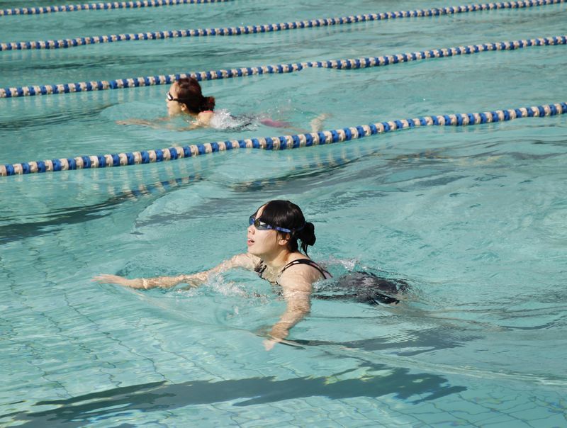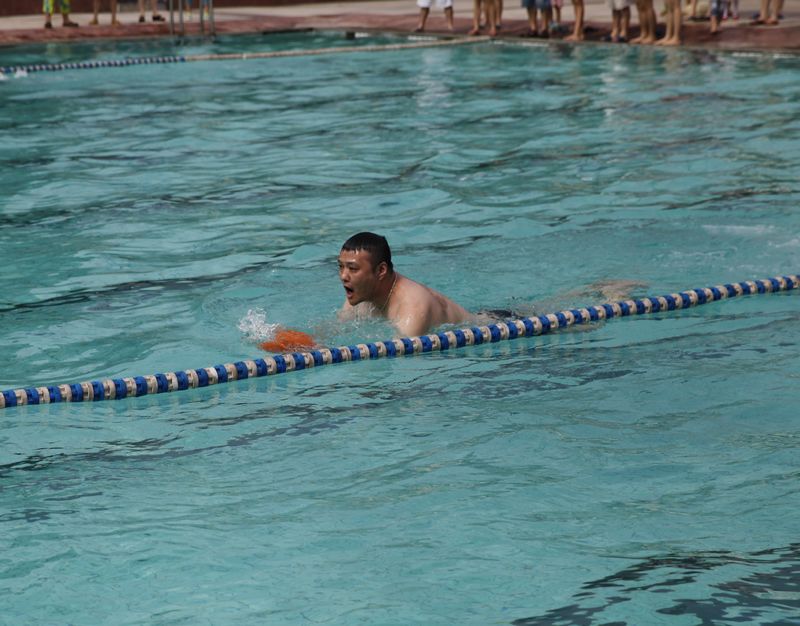 比赛当天,天公一改连日的阴雨,艳阳高照,公司游泳池里热闹非凡,员工的参赛热度足可以和当日的天气媲美。上午9时整,男子组50米蛙泳在哨声中拉开序幕。像蛟龙入海般,参赛选手以矫健的身姿跃入水中,收腿、翻脚、登水,臂腿配合,选手们在水中拼力比劲,啦啦队在岸上呐喊助威,谁先到达终点并不重要,重要的是传播一种快乐运动、健康生活的理念。