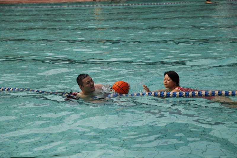 水上排球相当于将陆上排球比赛搬运至水中进行比赛,比赛过程中仅限于垫球和上手传球,禁止扣球,比赛采用15分制,一局定胜负,当天的比赛共有14支队伍参加。作为排球和游泳相结合的一种趣味活动,公司也是首次开展,当天的比赛中,发球容易接球难,幽默的解说词,队员间不协调的配合,骄阳之下、游泳池畔,笑语阵阵好不开怀。