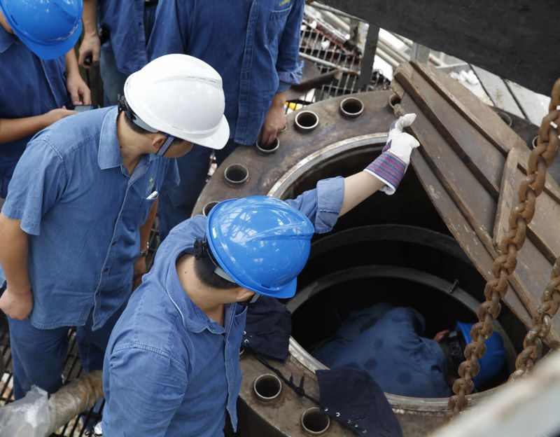 根据氨罐液位,此次203C抢修,依然安排在深夜。夏日凌晨的夜空是静谧的,尿素装置现场却是热闹的,先是工艺人员楼上楼下穿梭于装置中,其次是203C处,叮叮当当的响声不断,吆喝声时时传来。对于承担主要抢修任务的机械厂铆工班全体人员来说,虽然是轻车熟路,却不可掉以轻心,当晚11时许,根据工艺停车进度,他们就提前抵达现场,接好线,搭好架子,准备随时开工。