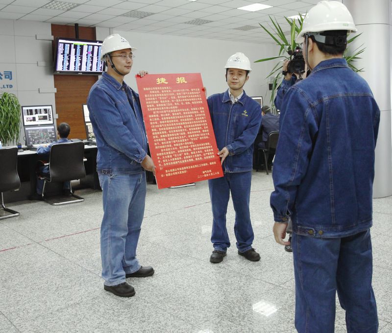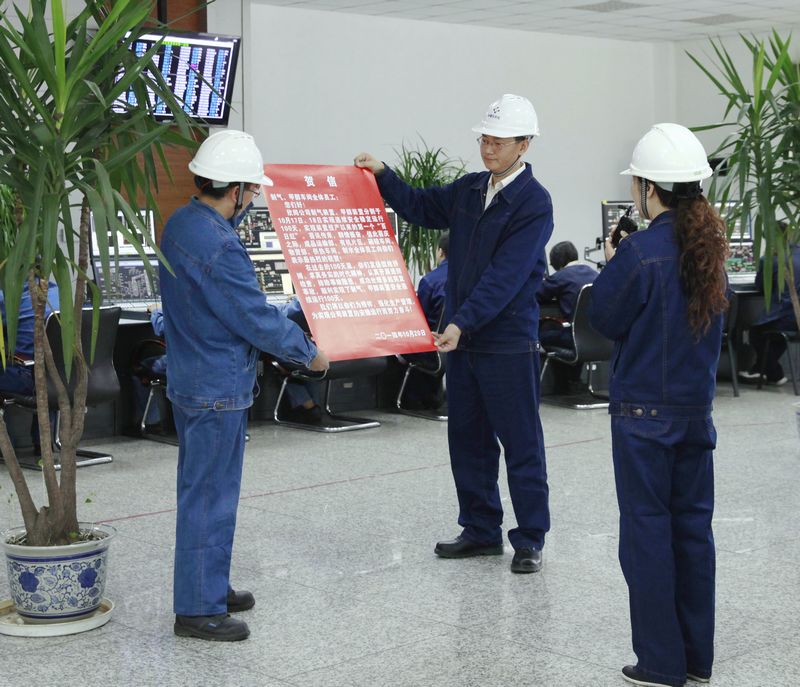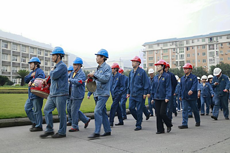 上午9:30点,在大红锣鼓的带领下,公司领导陈林、梁洪、曾家其、宋玉,总经理助理杨志,各专业副总工程师、职能部门、生产、辅助车间负责人,喜气洋洋地从公司大门出发,前往制气、甲醇车间祝捷。