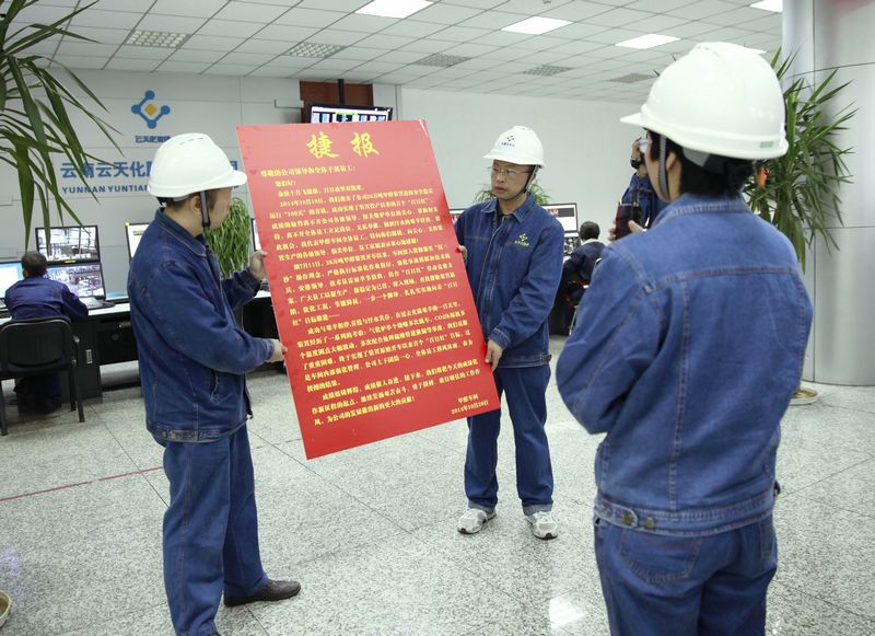 金秋十月,硕果飘香,在云天化建企四十周年之际,10月17日、18日,公司煤代气两套装置安全连续稳定运行100天,双双迎来了投产以来的第一个“百日红”。这标志着公司对煤气化技术的消化吸收取得新的突破,也为装置实现达标达产奠定了坚实的基础!10月20日上午,公司隆重举行祝捷仪式,庆祝这一新的成绩。