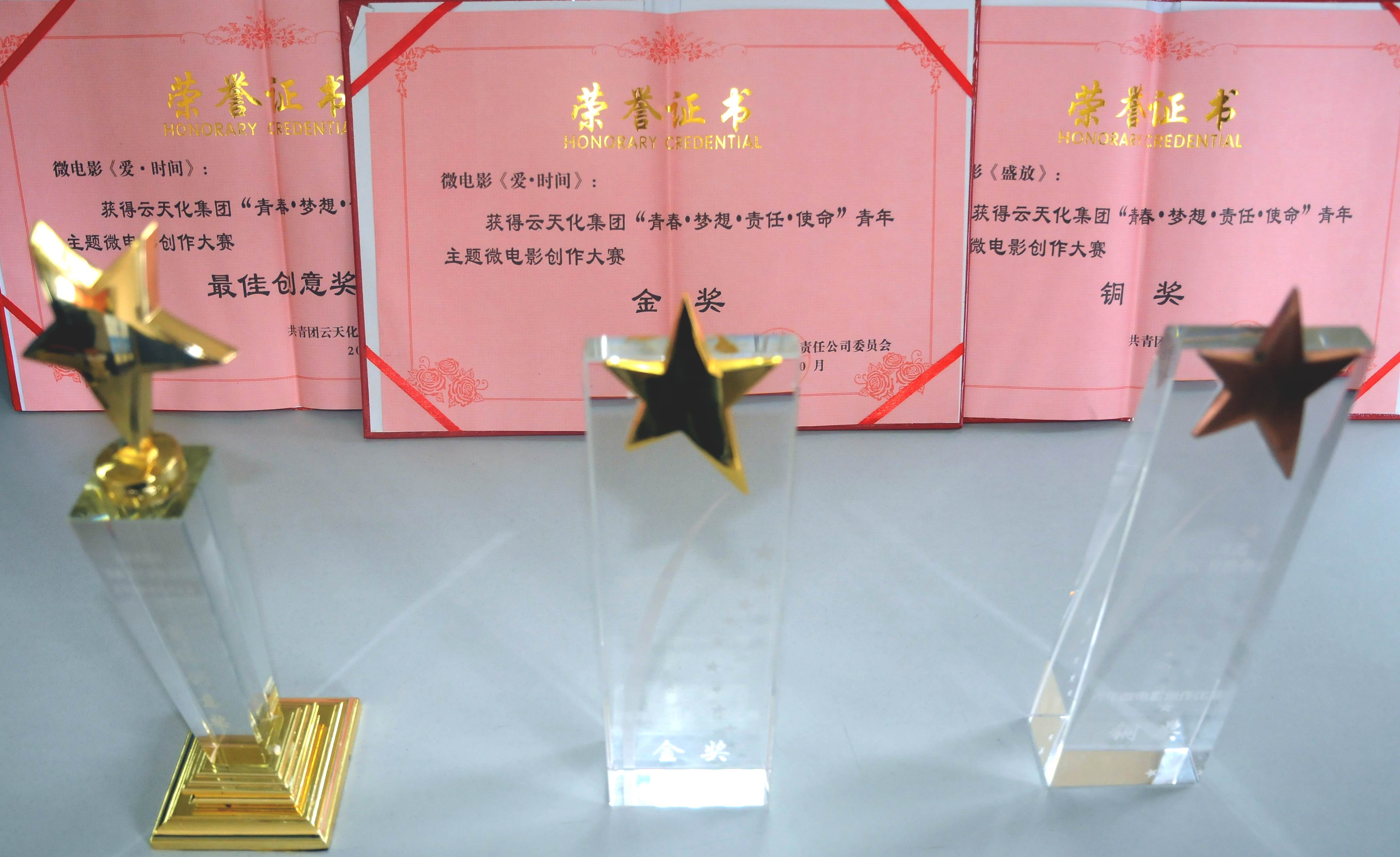 经过激烈角逐,由水富云天化团委拍摄的都市爱情奇幻剧《爱·时间》一举斩获最佳创意奖、优秀影片金奖两项大奖。影片由梁刘林自编自导自演,故事讲述主人公采用时间逆转的超能力,实现了屌丝逆袭白富美的奇迹,醒来后却只是一场梦,影片借此表达“时间不可逆转,请活在当下”的寓意。另外一部影片《盛放》,由梁刘林、张振、阿蓉、赵威等人联合执导,以“百日红花”为情感线索,折射出老一辈云天化人对企业深厚的情感依托与执着坚毅、敬业奉献的精神品格。本片以“百日红花”的盛放,寓意每一个员工在平凡岗位上的人生价值的完美“盛放”,是企业实现基业长青的精神财富与不竭动力,以此呼唤主人公“是他,是我,是你”。该片以平凡人的视角和基调,以真实感赢得情感共鸣,摘得优秀影片铜奖。