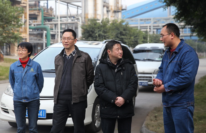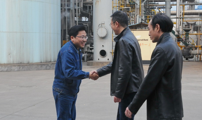 集团副总经理胡均、公司总经理陈林一行还来到公司生产调度室、合成以及尿素主控室,在表达新春问候的同时,详细了解了装置生产运行情况。