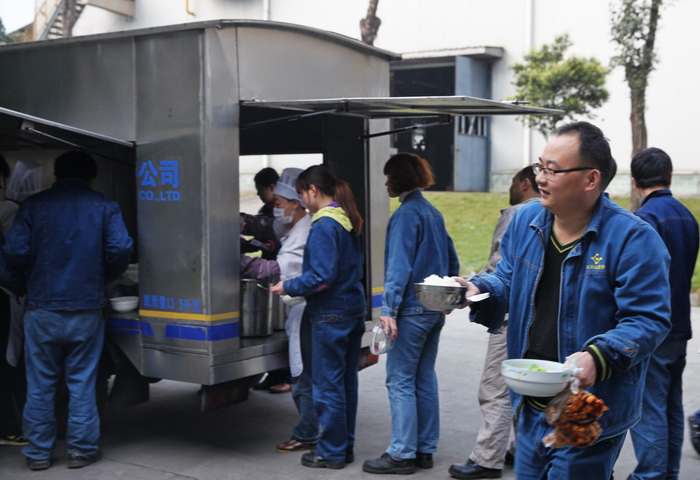 2月18日是中国农历除夕,在这个阖家团圆的日子里,由于化工生产的连续性,公司很多员工都无法回家与家人团聚,依旧坚守在岗位上,因此除夕领导送饭慰问当班员工成为了几十年来公司坚持的一项传统。