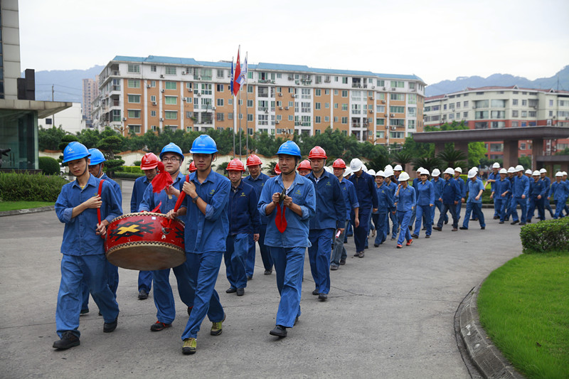 上午9点30,分,祝捷队伍从公司厂大门出发前往合成车间祝捷。
