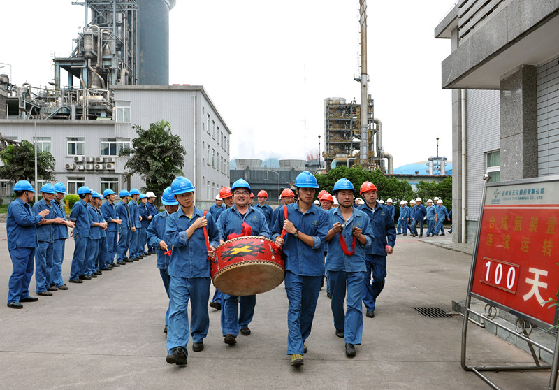 在欢庆锣鼓的带领下,公司领导陈林、梁洪、曾家其、杨志,各副总工程师及中级管理人员前往合成车间祝捷。