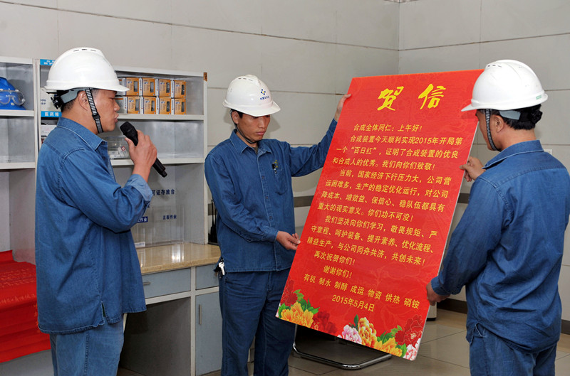 5月4日,合成氨装置迎来了2015年首个“百日红”,这也是合成氨生产史上的第56个“百日红”。“百日红”的实现是公司全体员工共同努力,用劳动结出的最生动有力的果实,它诠释了劳动光荣、创造伟大的时代内涵,展现了云天化人爱岗敬业、勇争一流的优良品格。
