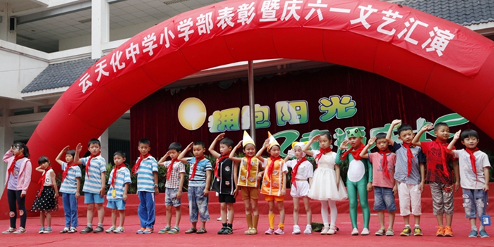 张张笑脸,漾起节日的欢乐;星星火炬,唱响嘹亮的队歌,2015年6月1日,云天化中学小学部迎来了“拥抱阳光,幸福成长”文艺汇演暨颁奖典礼。