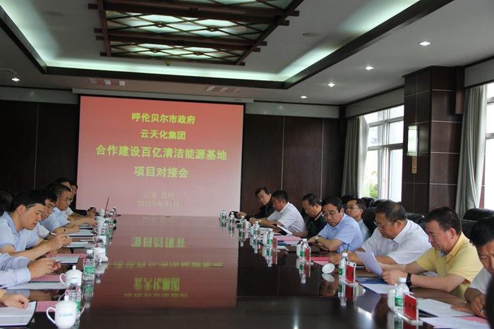 8月1日,呼伦贝尔市委常委、市长张利平,常务副市长白志远在市发改委、经信委、环保局、经济技术开发区管委会、陈旗政府等相关人员陪同下,来到云天化集团总部,就集团在呼伦贝尔地区的项目投资进行了商讨,并与集团签订了《建设百亿清洁能源基地战略合作框架意向书》。