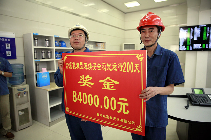 2015年8月12日,公司合成氨装置继5月4日实现今年的首个百日红后,又迎来了连续安全运行200天的喜讯,这是今年合成氨装置的第二个百日红也是合成氨装置运行史上的第57个百日红,公司举行了隆重的祝捷仪式。