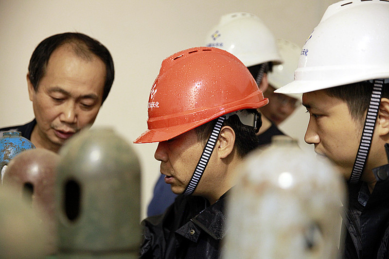 由公司副总经理曾家其,副总工程师雷坚、刘丙富、邓万明及各相关单位负责人组成的检查组分别对公司有机、无机片区进行了检查。此次检查重点对公司危化品重大危险源,危化品储槽及仓库,危化品生产环节,危化品经营、充装环节四大方面进行了详细的查看。
