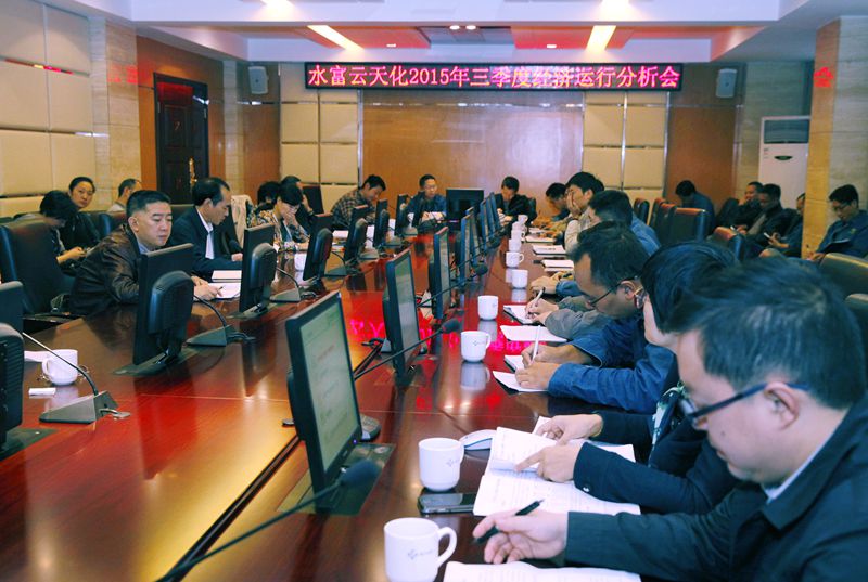10月30日上午,公司在云天宾馆一会议室召开2015年三季度经济运行分析会,对公司及托管单位前三季度的经济运行情况进行分析,指出存在的困难,提出解决措施。公司总经理陈林,党委书记梁洪,副总经理曾家其,党委副书记、纪委书记、工会主席宋玉,副总经理杨志,各专业副总及各职能部门、生产车间负责人参加了会议。