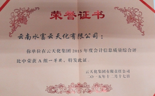 12月17日至18日,云天化集团2015年度财务管理工作会在昆明召开。会议对2015年度各公司会计信息质量评比情况进行了表彰,水富云天化喜获A组“云天化股份内”单位会计信息质量一等奖。