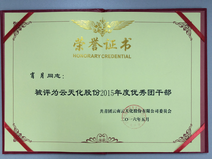 表彰会上,公司第一联合支部(原尿素团支部)、金新化工生产运营中心团支部荣获2015年度股份“先进团支部”称号;公司团委委员周龙、金新化工设备管理中心团支部书记肖月荣获2015年度股份“优秀共青团干部”称号;公司团委委员罗会玲、东明矿业水文地质技术员郭旭荣获股份2015年度“优秀共青团员”称号;公司化肥车间武满红荣获股份2015年度 “青年岗位能手”称号;金新化工检修维护腾文军荣获股份2015年度 “青年岗位能手”提名奖。
