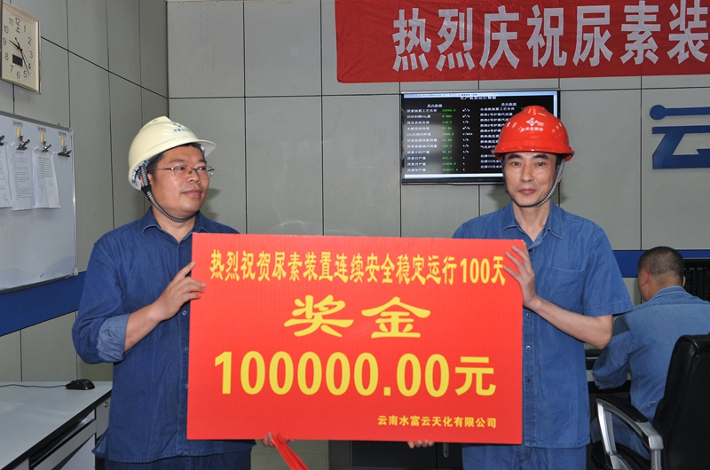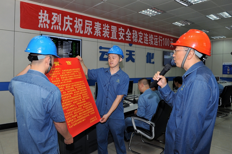 继今年5月6日合成氨装置取得公司今年的第一个“百日红”之后,6月25日,公司尿素装置也实现了连续安全运行100天,取得了公司今年的第二个“百日红”,这也是尿素装置自投产以来的第31个“百日红”,鼓舞人心的成果给新的生产形势带来了新的希望!喜讯传来公司全体员工为之振奋并举行了隆重的祝捷仪式。
