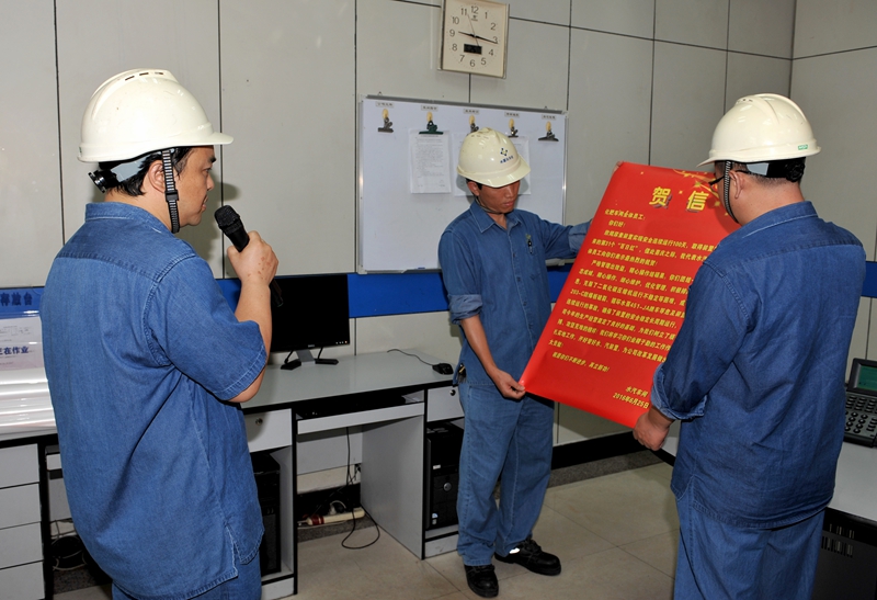 上午9点,祝捷队伍前往尿素装置主控室进行祝捷。