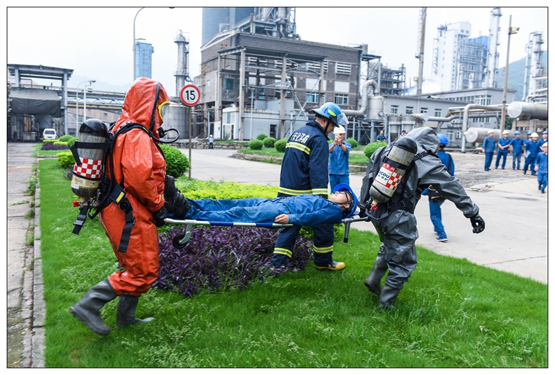 6月27日下午,公司联合水富县共同开展了一场紧张、逼真的合成氨储罐泄漏应急事故演习。此次演习没有事先编制演习方案,完全按照事故应急预案实施,接近于实战状态,从而真实地检验紧急情况下,厂县应急响应能力和事故处理能力。