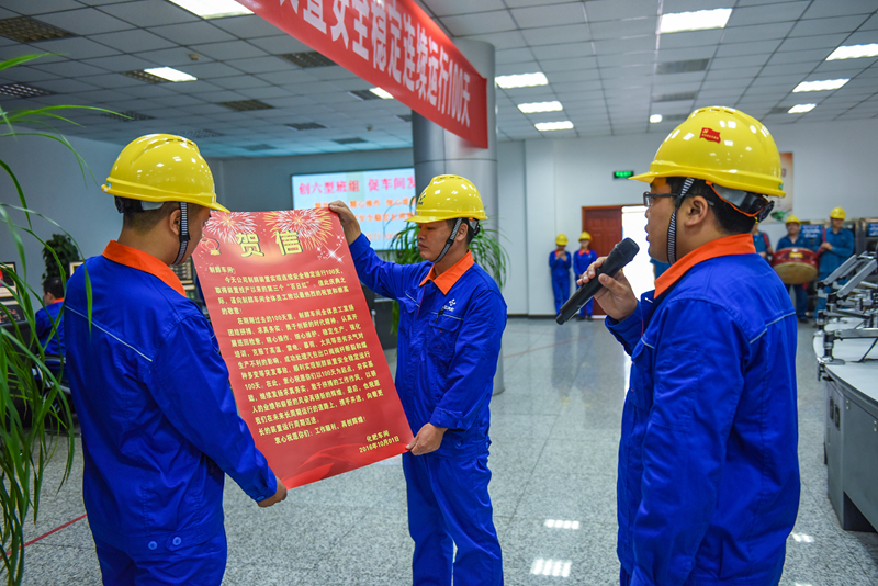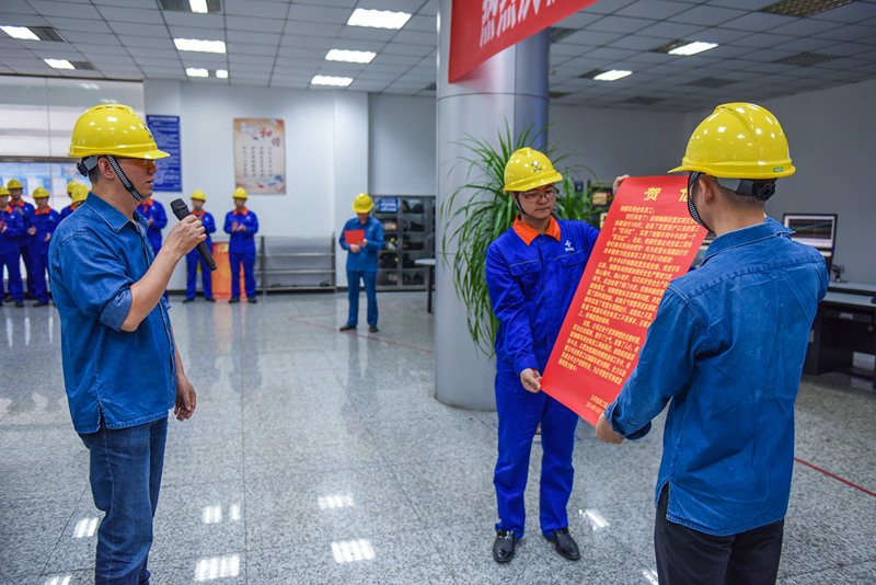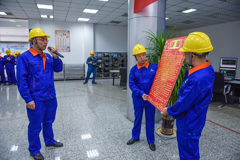 上午9点,祝捷队伍前往制醇车间主控室进行祝捷。