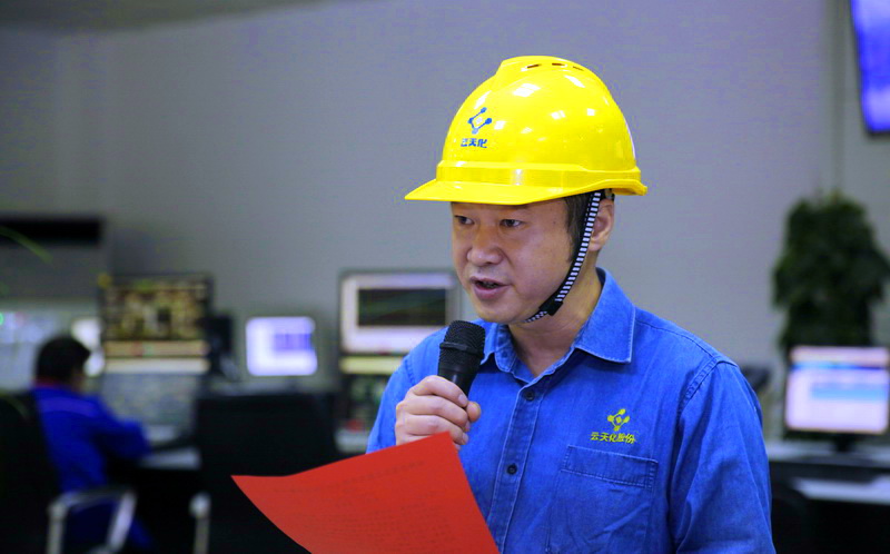 公司工艺副总工程师、安全环保总监邓万明宣读公司党政工团贺信