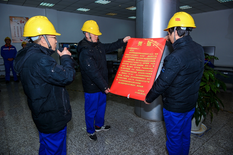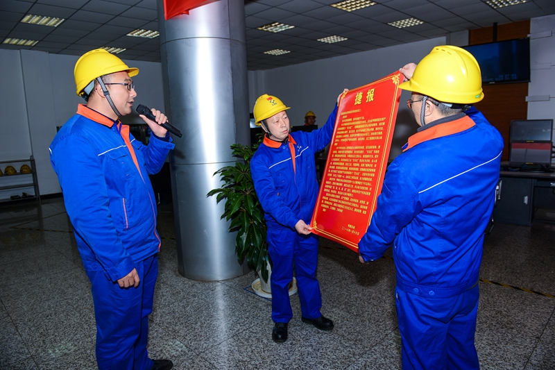 在甲醇车间主控室,前来祝捷的人群齐聚一堂,每个人的脸上都洋溢着喜悦和自豪,分享这历史性的一刻。自2017年10月10日甲醇装置开车以来,甲醇车间全体员工以“百日红”常态化为目标,严格现场巡检,积极查找排除装置隐患,优化工况,精心维护,克服了煤种多变、碎煤仓堵煤、管道设备腐蚀泄露、排渣系统堵渣、控制阀在线更换等困难,有效保护了装置的“安稳长满优”运行。“百日红”的取得,是甲醇车间、维保事业部、生产管理部、经营部等相关单位通力协作、锐意进取的结果,是公司干部员工围绕生产中心工作上下一心攻坚克难的收获。