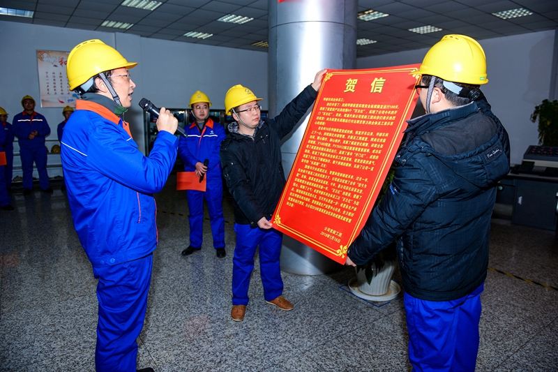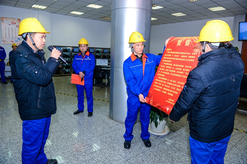 寒冬正甚,傲梅吐芳。1月16日,公司甲醇装置传来捷报,甲醇装置连续安全稳定运行100天,收获甲醇装置史上第4个“百日红”,这也是公司2018年生产装置的“开门红”。上午9:00,踏着欢快的锣鼓声,公司领导杨志、杜伟,各专业副总、总监以及公司中级管理人员和员工代表组成祝捷队伍,前往甲醇车间进行祝贺。