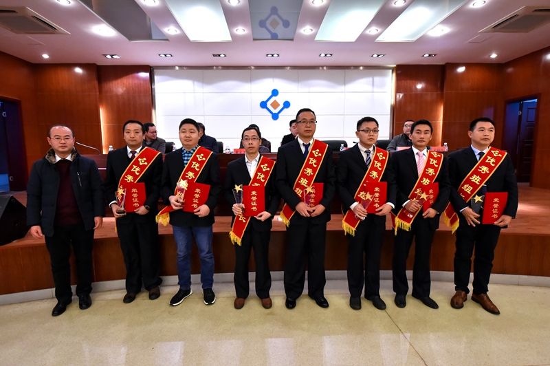 公司党委书记梁洪为获得“优秀班组奖”的集体颁奖