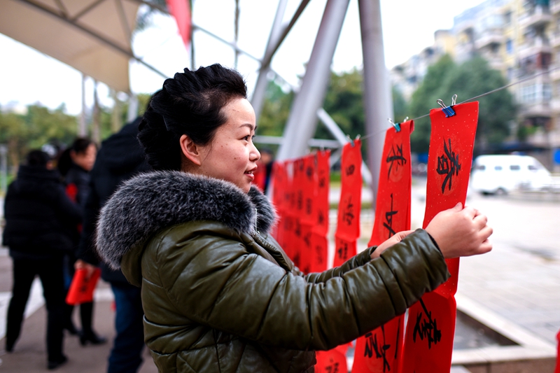 红彤彤的春联,泛着墨香,给寒冷的冬天增添了一份喜庆和暖意。手里拿着春联的张大爷高兴地说:“赠送春联感觉方便实惠,这么好看的春联贴在家门上,特别喜庆。”书画协会会长王少青欣慰的说到:“用我们的笔墨给大家带来温暖和快乐,不仅惠民,而且也弘扬了传统文化,幸福又充满意义。”