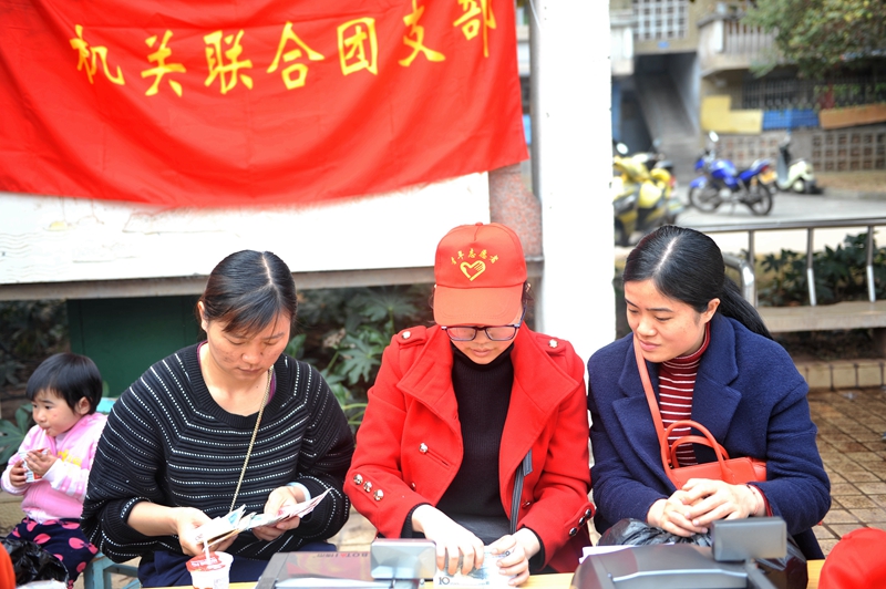 机关联合第一团小组提供零钞兑换、爱心义卖等服务