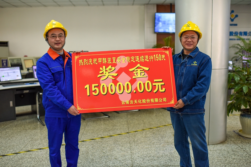 公司副总经理杨志代表公司向甲醇车间颁发奖金并讲话。杨志表示,甲醇装置这来之不易的150天,凝聚了公司全体干部员工的智慧和汗水,他代表公司经营班子向甲醇车间全体员工辛勤努力精心维护、向检维修及其他相关单位不惧困难护航生产表示诚挚的感谢,对所取得的优异成绩表示衷心的祝贺。杨志还表示,装置的“安、稳、长、满、优”是我们永恒的追求,希望大家继续发扬长周期文化,坚持“精益生产、达于至善”的理念,务实笃行,勇于担当,抓牢抓实抓细各项工作,为完成公司生产经营目标而不懈奋斗。