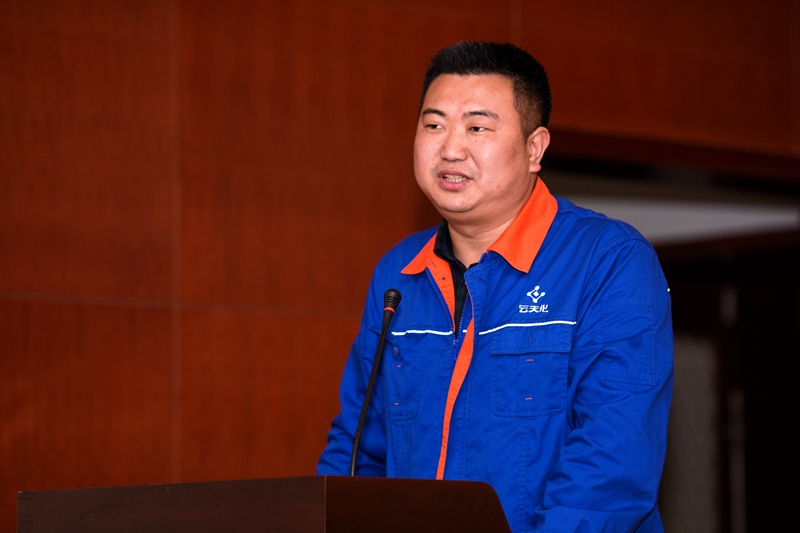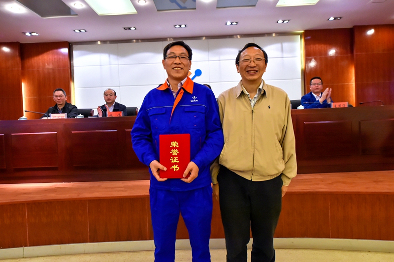 公司工艺副总工程师、安全环保总监邓万明为“管理创新鼓励奖”获得者颁奖