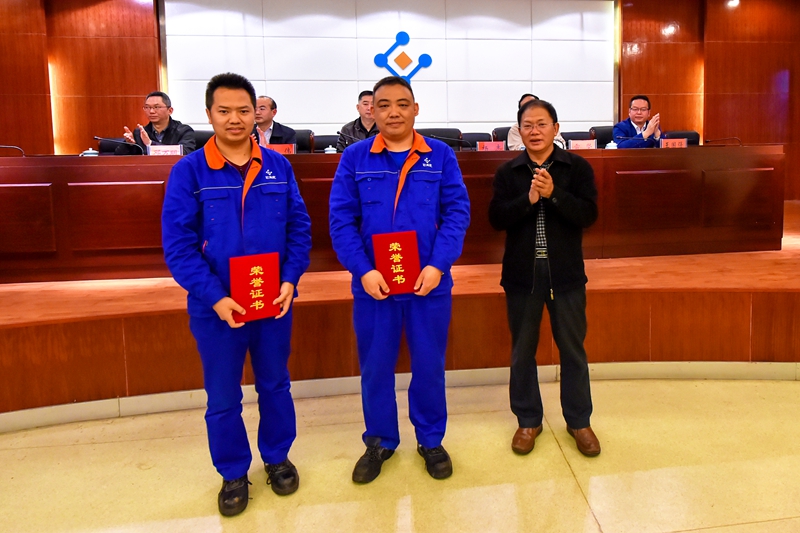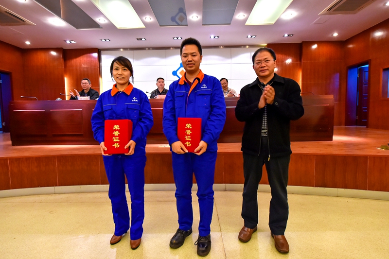 公司电仪副总工程师、设备总监雷坚为“管理创新三等奖”获得者颁奖