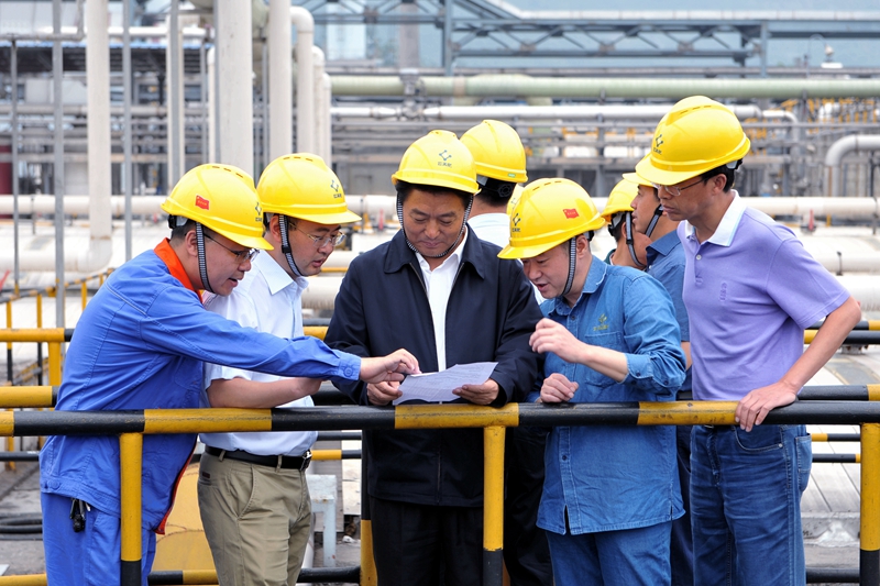 在生产装置现场,和良辉一行对废水处理装置和北排口进行了详细的检查,在查看公司废水北排口在线监测数据后,和良辉对公司废水处理及污染物排放控制给予了高度的评价,充分肯定公司在环保方面所作的努力和取得的成绩。