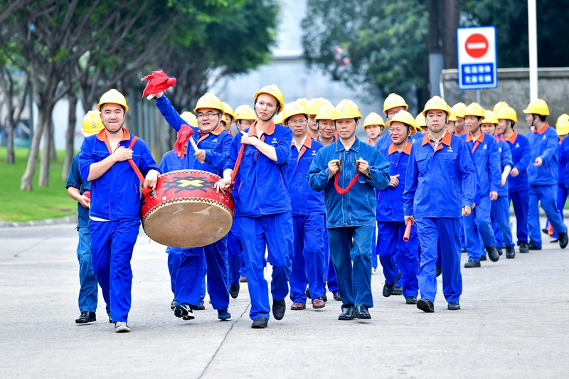 祝捷队伍向化肥车间进发