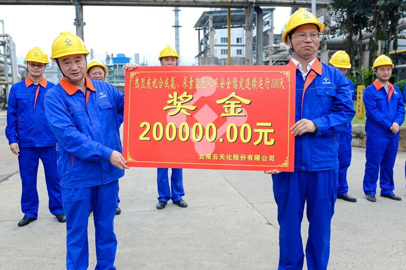 公司总经理、党委副书记曾家其向化肥车间颁发奖金