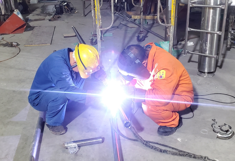 9月以来,秋高气爽,现场施工条件良好,维保事业部各专业工种默契配合、统一协调、同步推进。采取“白+黑”“五+二”的战斗模式,见缝插针、挑灯夜战相结合,与时间赛跑,争分夺秒抢工期。短短一个月时间,共安装钢结构框架平台及爬梯3层、大型反应釜4台、生产传送设备及电机12台、生产控制柜2台,安装管道400余米。截止目前,维保事业部各专业团队正全力以赴地进行项目的收尾工作。